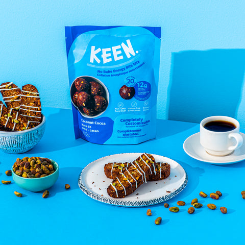 Voici une variante d’un classique italien, les Biscottis à la noix de coco, cacao et pistache !