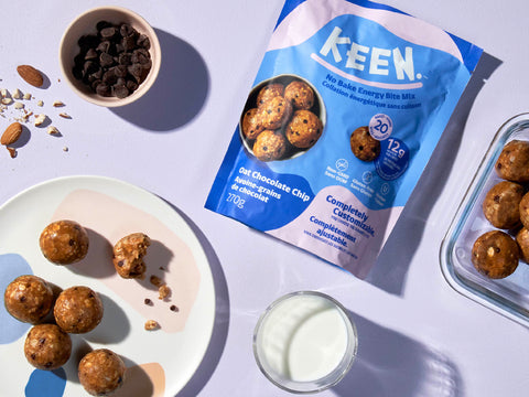 KEEN No-Bake Energy Bite Mix is a dry mix that allows you to quickly prepare and create your own customizable energy bites to suit your unique health preferences.